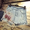2020 verão nova mulher flor diamante algodão camisa tshirt + calças largas jean shorts menina senhoras cintura alta buraco denim shorts conjunto