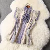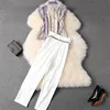 Alta rua de moda 2020 verão feminino casual outfits babados gola arco impressão topo e calças 2 peças conjunto roupas