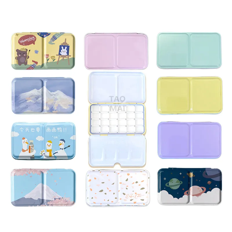 Paleta de estojo vazio para pintura aquarela, portátil, metal, com 24 grades, ferramentas de armazenamento de tinta aquarela, materiais de arte de pintura
