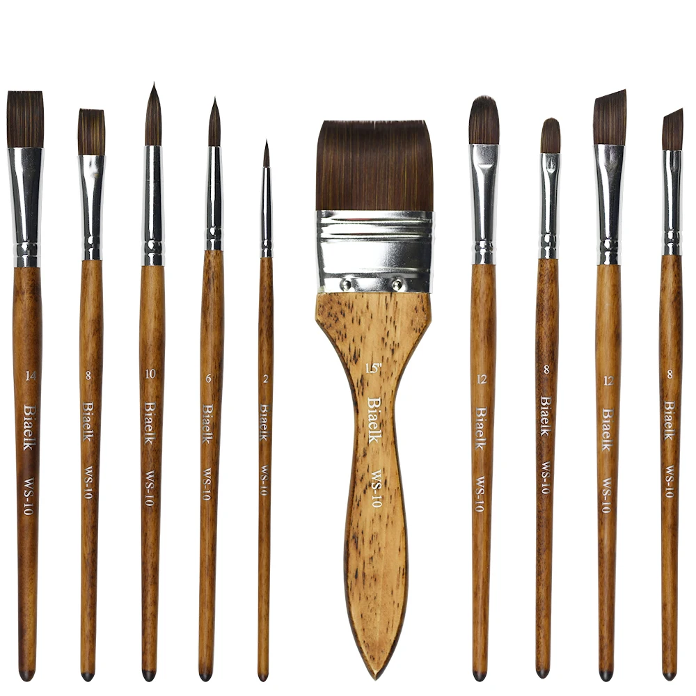 Alta qualidade 10 peças/conjunto espaço de cabelo taklon cabo de madeira aquarela suprimentos arte artista pincéis