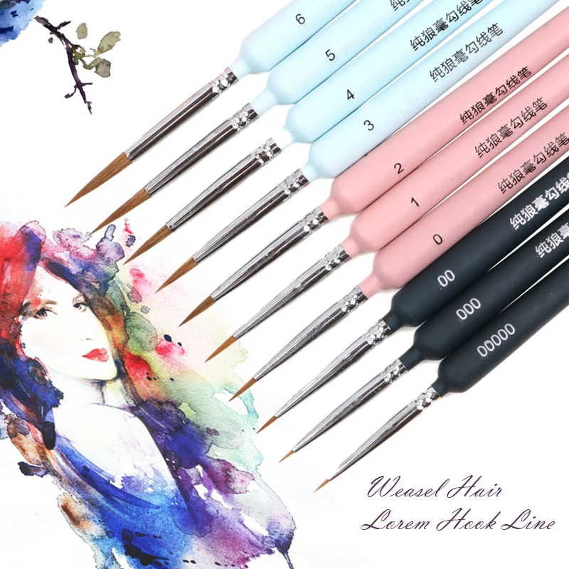 Pincel macio acrílico do cabelo da doninha da aguarela da pintura da pena da linha do gancho 10 pces diminuto apropriado para fontes da arte, canetas da arte da pintura