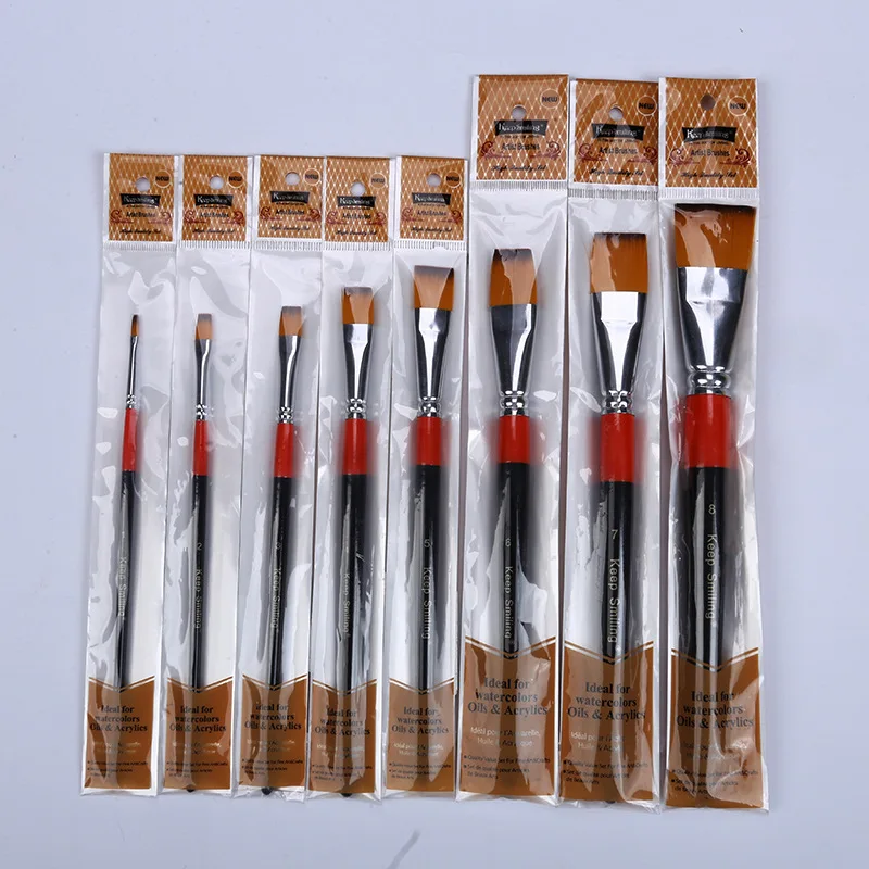 4 pçs profissional cabelo de náilon plana pico pintura a óleo pincéis artista conjunto acrílico diy caneta aquarela para artistas pintores iniciantes