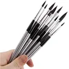 10 pçs conjunto de escova de pintura em aquarela redonda detalhe ponta afiada cabelo preto macio punho confortável para aquarela acrílico gouache óleo