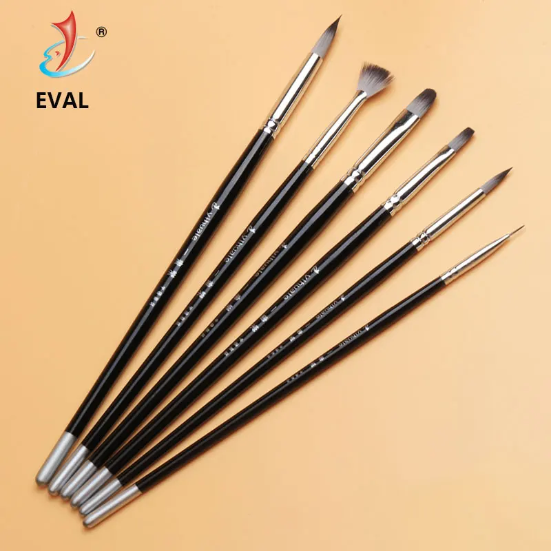 Eval 6 pçs pincel de pintura conjunto de cabelo náilon preto haste de bétula pintura escova para óleo acrílico aquarela gouache estudante iniciante arte ferramenta