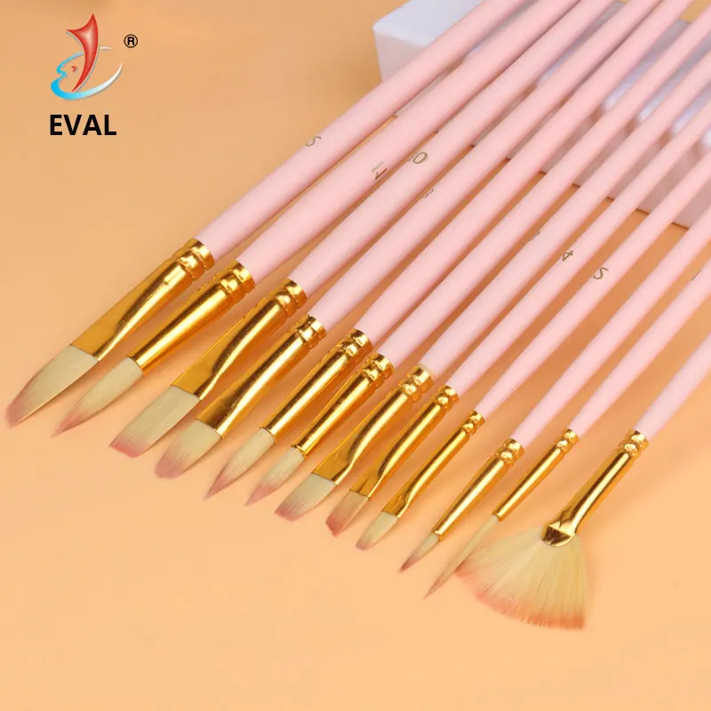 12 pçs cabelo de náilon punho de madeira pintura em aquarela pincel caneta conjunto para estudante escola óleo acrílico pintura arte pincéis suprimentos
