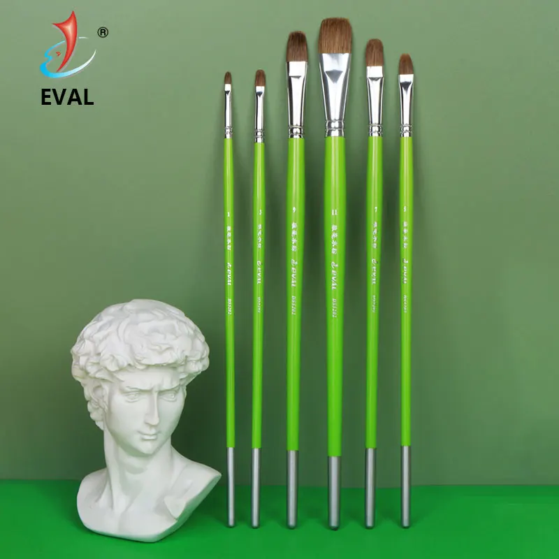 Eval 6 pçs escova de tinta de cabelo da doninha conjunto para pintura a óleo de aquarela acrílica verde birch lidar com desenho escova escola exercício caneta