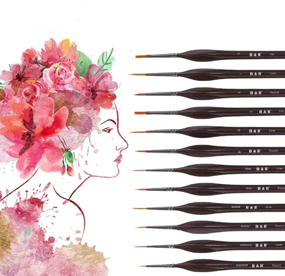 Micro pincéis finos da pintura do detalhe diminuto ajustados 12 pces profissional minúsculo para detalhar a pintura a óleo acrílica da aguarela da rocha