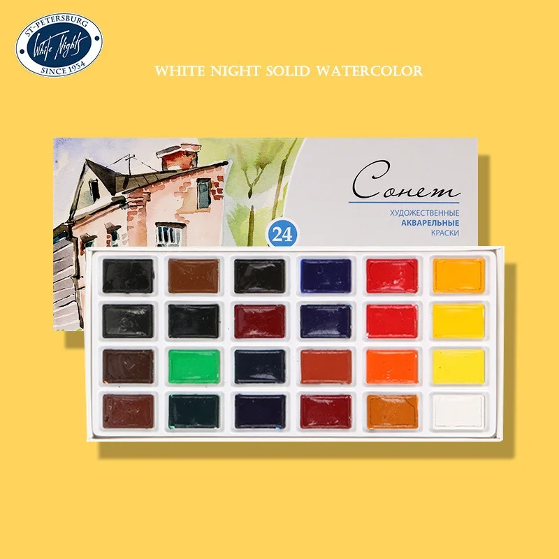 Tinta aquarela sólida noturna branca russa, estudante/artista, alta concentração de guache, pigmento para desenho, suprimentos de pintura