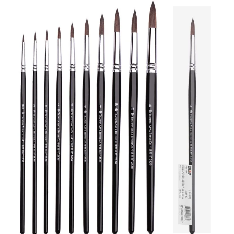 Pincel de pintura de cabelo de esquilo profissional, pincel artístico de tinta aquarela redonda para pintura a óleo acrílica, materiais de arte