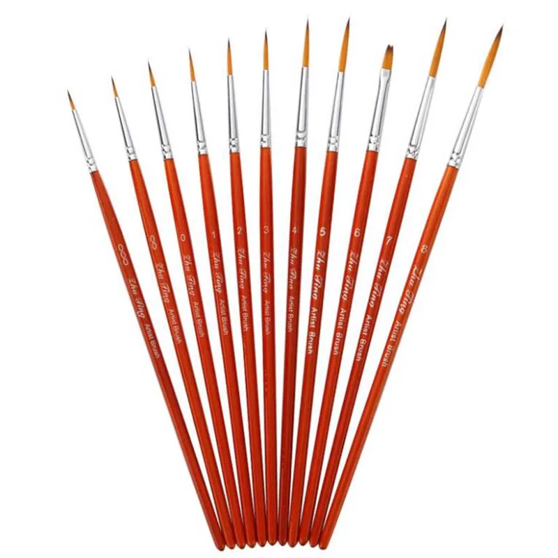 11 pçs/set cauda longa nylonhair gancho linha caneta pintura escova crianças diy suprimentos de arte ferramenta arte papelaria pintura em aquarela caneta