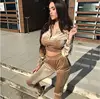 Conjunto de duas peças feminino treino casual esporte outfit manga longa com zíper jaquetas cintura alta calças plus size conjuntos de correspondência