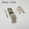 Ospon 90mm euro padrão perfil sólido latão cilindro chave 45x45 snkt com acabamento de escova de níquel, 3 pces chaves normais