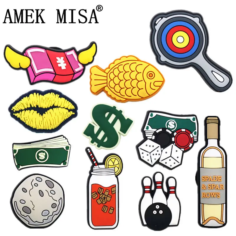 Original pvc clog croc encantos acessórios boliche bebidas licor dinheiro sapato decorações designer para jibz crianças x mas presentes de festa