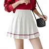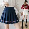 Mini saia feminina cintura alta, saia plissada estilo escolar, primavera verão 2021
