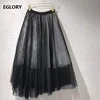 Saia feminina de alta qualidade, primavera verão, saia feminina sexy de malha de tule, patchwork, casual, vestido de renda preto, roupas, 2021