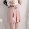 Ljsxls novo arco rosa rendas até uma linha de verão mini saia estilo coreano império plissado saias das mulheres sólida dobras roupas mulher 2021