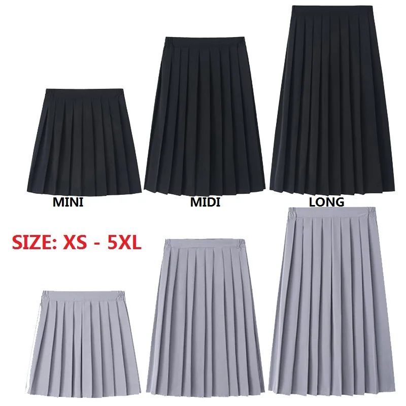 Saia plissada feminina, saia curta para mulheres, uniforme de verão e outono de cintura alta, na altura do joelho, plus size xs 5xl