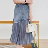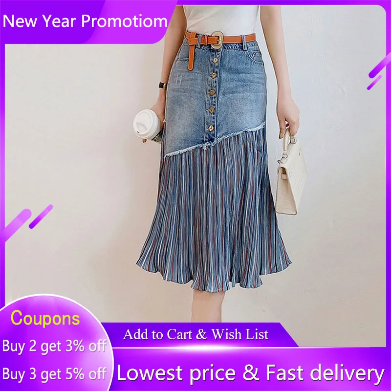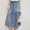 Saia doresuwe mimore com botão, saia de cintura alta moda feminina para comutadores, botão de retalhos e botões 2021 novo estilo