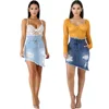 Saia jeans desgastada feminina, nova saia estilosa de verão com buraco bolso irregular, desgastado para mulheres, 2021