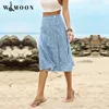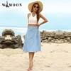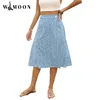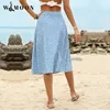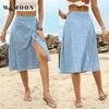 Verão novo azul de cintura alta envoltório em torno de chiffon floral linha botão na altura do joelho império sexy casual saia de praia