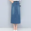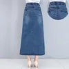 Nova moda longa casual denim saia primavera em linha reta mais tamanho S 2XL longo maxi saias para calças de brim femininas saias