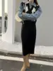 D fonte de fábrica socialite elegante cintura elástica cor sólida malha midi saia bn10281