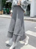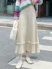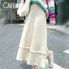 Caifish outono inverno swagger uma linha saias cintura alta malha maxi saia floral plissado saia estilo coreano kawaii qt1282