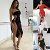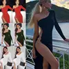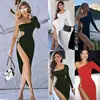 Feminino sexy oco um ombro split vestido moda elegante cor sólida apertado vestido longo