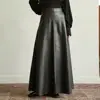 Saia feminina saias de couro outono saia longa do plutônio 2021 escritório sólido senhora midi saias elegantes de cintura alta parte bottoms saia