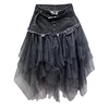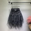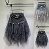 Verão irregular jeans saias das mulheres de cintura alta tule saia longo denim plissado midi saias malha retalhos bolsos borla cinto