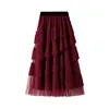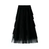 Saias de tule das mulheres midi saia plissada preto azul tule saia feminina primavera verão 2021 coreano elástico cintura alta malha tutu saia
