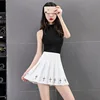 Moda coreana y2k elástico de cintura alta saia feminina preto kawaii bordado curto harajuku plissado a line verão mini saias