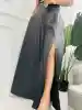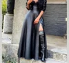 Saia de bolso de couro preto do plutônio das mulheres 2021 outono nova cor sólida saias longas de couro sexy alta fenda saias
