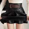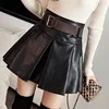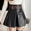 Ljsxls saias plissadas das mulheres 2021 couro do plutônio do vintage saias curtas mulheres de cintura alta outono inverno preto mini a linha falda mujer
