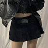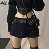 Allneon pastel goth cintura baixa preto micro saias y2k streetwear bolsos retalhos a line saia e girl estética outfits zíper