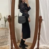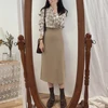 Solid color women's dress retro spring and summer straight rice length high waist women's dress winter women