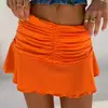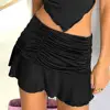 Saia elegante atraente na moda suave shirring mini saia mini saia curta