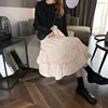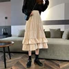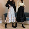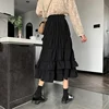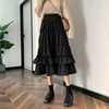 Novo vintage saia de cintura alta feminina 2021 primavera outono adolescentes escola meninas babados plissados babados retalhos longo midi saia preta