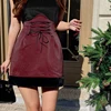 Darlingaga moda vintage falso pele retalhos vermelho couro do plutônio saia feminina rendas até bodycon bandagem cintura alta saia mini festa quente