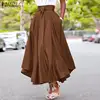 Zanzea moda saias irregulares férias zíper cintura alta uma linha saias das mulheres verão saias longas praia do vintage saias sólidas