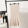 Outono e inverno feminino chique babados fino de alta cintura sereia saia all match cor sólida envolto hip malha queimado saia