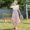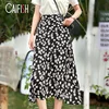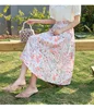 Caifish moda coreana impressão floral saia longa doce chique muitas cores saia plissada feminino elegante saia de cintura alta qt814