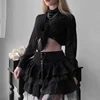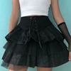 Goth estética rendas até mini saia para mulher escuro academia malha retalhos a linha saia punk estilo festa preto saias