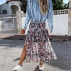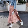 Verão cintura alta saia de impressão longa floral divisão 2021 feminino casual chiffon praia faldas feminino boho cintura elástica férias saias