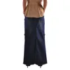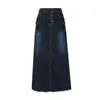 Moda saias longas mid cintura botão bolso frente reta denim maxi saias harajuku streetwear seção fina saia linha a 2021