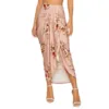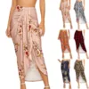 Jaycosin saias casuais femininas fenda envoltório assimétrico elástico de cintura alta maxi drapeado impressão saia senhora babados envoltório hip falda