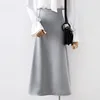 Mulheres elegante escritório senhora qualidade brilhante cetim saia plain brilhante moda elegante sólido saias de cintura alta