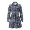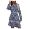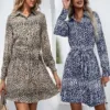 Jaycosin leopardo feminino impresso mini vestido de manga comprida com decote em v único breasted vestido primavera outono manga alargamento vestidos 2021