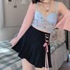 Sunny y.j. Laço acima da cintura alta preto saia plissada tênis curto doce retalhos vintage y2k mini saias gótico grunge bonito a linha