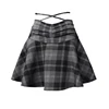 Qiukichonson gothic lolita saia feminina 2021 primavera outono inverno cintura alta rendas up curto xadrez saias de lã mini tutu femme